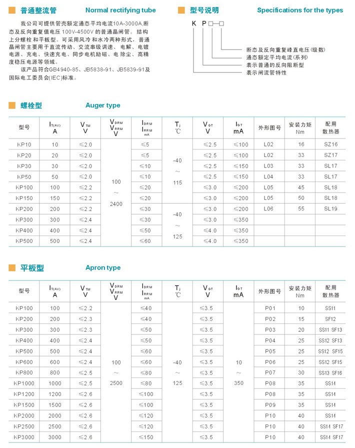ZP螺旋式普通硅整流管系列